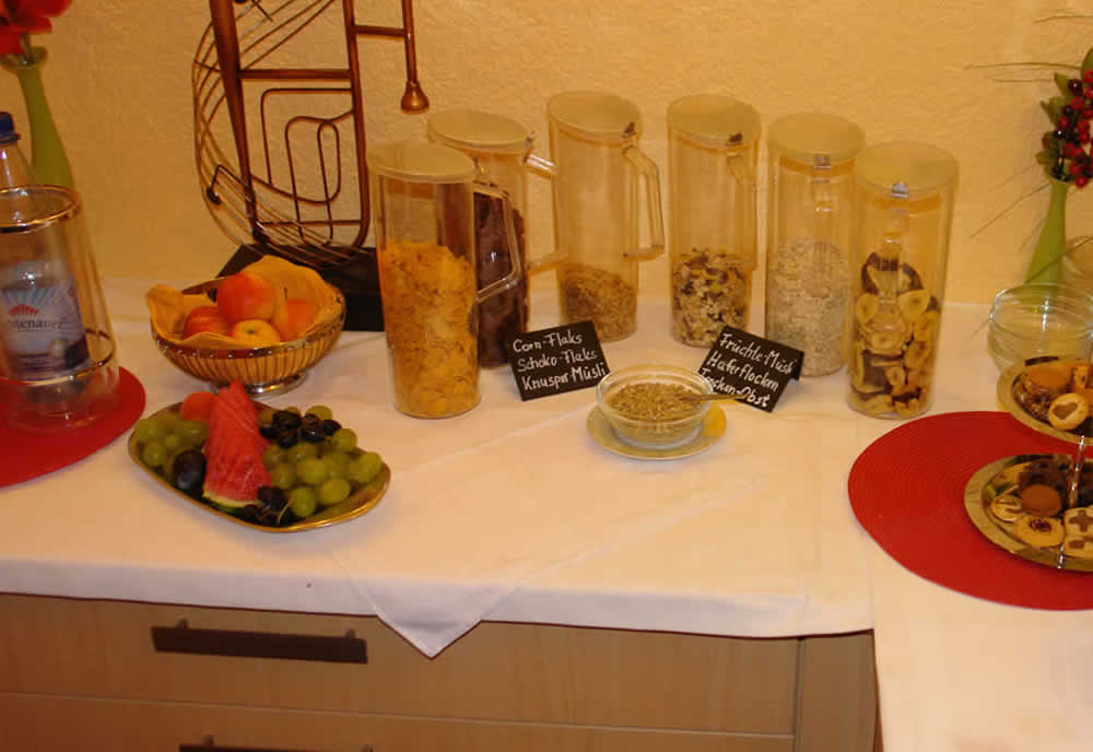 Nach einer geruhsamen Nacht erwartet Sie am Morgen ein reichhaltiges Frühstücksbuffet.